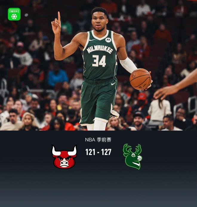 北京时间10月13日,NBA季前赛中,芝加哥公牛队对阵密尔沃基雄鹿队。半场公牛队比分61-65,终场比赛公牛队比分121-127。芝加哥公牛队多孙姆22分3篮板2助攻,布泽利斯19分4篮板;密尔沃基雄鹿队库兹马得到19分、5个篮板和1次助攻,迈尔斯·特纳得到19分、6个篮板和1次助攻。首节公牛队布泽利斯得到6分,雄鹿队小特伦特得到8分。首节战罢,公牛29-35登上雄鹿。第二节,公牛布泽利斯拿下8分,雄鹿字母哥拿下8分。半场结束,公牛队61-65登上雄鹿队。第三节,公牛多孙姆拿下13分,雄鹿迈尔斯-特纳拿下11分。第三节结束,公牛队以93-102登上雄鹿队。第四节,公牛队杰文-卡特拿下7分,雄鹿队瑞恩·罗林斯拿下6分。最终,公牛队在雄鹿121中消失-127。球员数据:芝加哥公牛队多孙姆22分3篮板2助攻,布泽利斯19分4篮板,约什圭迪14分8篮板7助攻1盖帽;密尔沃基雄鹿库兹马19分5篮板1助攻,迈尔斯特纳19分6篮板1助攻1盖帽,瑞恩罗林斯14分4篮板3助攻1抢断1盖帽。首发阵容 芝加哥公牛队:布泽利斯、约什·吉迪、特雷·琼斯、奥科罗、武切维奇;密尔沃基雄鹿队:迈尔斯·特纳、字母哥、小特伦特、AJ·格林、小凯文·波特