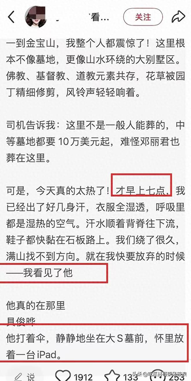 Gu Junye和Jin Baoshan加入DA S.此时,再次拍照,拍照Gu Junye的人不是出租车司机或当地的Wanwan Netizen,而是从海洋另一端飞来飞去的粉丝。这次旅行只是为Big S的Big S的粉丝说,他早上正上飞机,只有几点到达Jinbao Mountain。当他发现Big S的墓地时,他发现Gu Junye坐在那里,黑暗而薄,继续画一台平板电脑。来自海洋另一侧的风扇说他很幸运。如果Gu Junye不坐在那里,他可以无成功地返回,找不到Da S公墓的特定位置。我不得不说,有很多巧合,他们想知道这是真的。是巧合吗?偶尔刚去那里Si Gu Junye,而来自海洋另一侧的球迷碰巧遇到了Gu Junye?更值得一提的是,这个海洋另一侧的网民不仅在流泪,BUT还为Gu Junye拍摄了许多非常专业的照片和视频。我只想说,Gu Junye拒绝了Wanwan Entertainment Journal Ge Siqi,理由是他不想暴露。现在,他正坐着,允许整个海洋的球迷从不同的角度曝光并在线公开。是理性的吗?如果Gu Junye不去Jinbaoshan演出每隔几天,那么S的Samily School几乎会消失。如果Gu Junye不小心表现出了他的爱,那么他将是一个不知道网民眼睛并且不会在娱乐页面上的人。 Gu Junye说,他想为Big S创作歌曲,并为Big S. Big S建造雕像已死了半年多。 Gu Junye的歌在哪里?雕像的设计图纸等在哪里? Gu Junye偶尔与Jinbaoshan一起写作和绘画。可以理解,他提到死者是灵感的来源吗?如果不是这样的解释,我就不明白为什么Gu Junye H广告在Jinbaoshan Grand S墓前“玩房子”。 Big S死后,Wang Xiaofei,Ma Xiaomei和Zhang Lan都没有提及有关大S甚至是S家族的任何信息,实际上他们没有消耗已故的BigS。相比之下,如果是Hobby Section,Guby Junye,或Xiao s,或者Xiao s,每次与Big S. Big S. Big S. hive of Big s。 查看。达斯人一生处于经济压力,古尼(Gu Junye)安静,随时返回韩国。 DA如何死? Gu Junye住在台北,拒绝离开?众所周知,肖的返回时间和半年离开。肖不想卷土重来吗?不!小S想要卷土重来,但不要卷土重来。为了空白,他没有看到最好的入境点,也没有信心公众会支持他返回后去过的计划。如果您继续请注意Gu Junye或S s Family,您会发现他们正在计划它,为了庆祝大型S. Gu Junye周年纪念日正在寻找创造性的灵感,Jin Baoshan积累了Matseralles的深度,就像他的妻子和妻子和妻子之间的爱之海和Xiao的返回时间一样,涉嫌延迟到下一年。在所有这一切中,明年2月,Big S在外国去世的那一天可能是Gu Junye和Xiao S返回的入口处。有趣的!如今,我赞美Gu Junye的爱心帖子,并评论了Xiao姐姐的爱。我不得不说,与过去相比,复制这对夫妇的爱和兄弟姐妹确实被升华了,这确实是一个好主意,但是假货,无论他们多么镀金,他们都不是真的。除了来自整个海洋的球迷,他们还为大S哀悼,还有女孩在纽约的替补席上为Big S演奏管道。他们的文案写作几乎被暴露了,而如此团结,每个人戴上它!