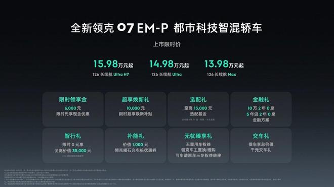 Lynk&Co在07 EM-P模型上做出了重大变化,这是内部装饰的重大挑战。当然,对于消费者来说,优化的Lynk&Co 07(参数|照片)EM-P更值得购买。新的Lynk&Co 07 EM-P有两个重大变化,一个是价格调整,另一种是改善调整。新车的起始价格适合139,800元,您可以从4,000元的Haman Katon音频中进行选择,这意味着您将在装备齐全的143,800 yuan附近获得Lynk&Co 07 EM-P。您应该知道,对于旧模型,这种调整需要至少170,000元才能获得它,而新型号的价格等于减少了近25,000元。通常不可能降低Lynk&Co。车型的价格。主要原因是成本。 Lynk&Co投资了很多质量,安全性,处理和性能的成本,并且很难控制建造汽车的成本。从最早的Lynk&Co 01到当前Lynk&Co 900,Lynk&Co Fo介绍质量和性能。但是,这一价格降低的要点是从25年开始到现在,即Lynk&Co 07 EM-P的150,000-200,000-200,000混合轿车市场发现了很大的运营压力。平均每月销量低于2,000台。这不是Lynk&Co一开始希望看到的结果。对于Lynk&Co 07 EM-P产品的出色表现,我深表歉意,因此价格下降并发布了一定的收入幅度以节省某些用户。除了维修价格外,Lynk&Co 07 EM-P的配置也得到了全面改进。是的,这已经完成! Mainimprovement是驾驶帮助系统。激光雷达已成为标准调整。它使用了Orin y驱动芯片,并将其升级到技术水平。这也是产品基因“仅性能,无智能”的改进。当然,随后有许多改进。例如,电动机功率从PAS增加T 160kW的新型180kW型号,整个EM-P功率架构的校准更多地集中在电气化体验上。添加了一种新的悬架,添加了柔软而艰难的维修。由于悬挂柔软和困难的系统的悬架,舒适性和运动表现也得到了改善。该版本139,800版增加了轮胎加热,座椅通风,座椅热和层压玻璃,这也将显着改善舒适性调节。一系列改进的优品是基于有效的价格降低,这有点令人惊讶。当然,全面的调整改进还意味着购买Lynk&Co 07 EM-P足以用于入门级模型。由于这辆车在低端和高端之间没有什么不同,因此只有高端和更高端的选择。对于普通用户,将为您提供EM-P,LiDAR驾驶帮助系统和驾驶舱,并进行良好的调整。即使对于入门级型号,纯电动范围也是126公里。还足够吗?这足以满足家庭的日常使用。这对Lynk&Co 07 EM-P的变化不仅挑战了对手,而且还使自己有机会重生。 Lynk&Co本身的定位更年轻,更加加强,并且在用户和Maexellent产品评论中享有良好的声誉。今年,Lynk&Co做出了许多动议。 Lynk&Co 900取得了成功,平均每月出售7,000辆。新的Lynk&Co 08也带有LiDAR,价格正在揭示。新的Lynk&Co 10 EM-P和Lynk&Co 07 EM-P也有自己的位置。通常,Lynk&Co插入式混合动力轿车的价格统称为一个级别。最初价格为170,000的产品现在是140,000元的牧师。该产品最初以20万元的价格出售,现在以170,000元的价格出售。降低价格的影响非常强大。如果您退后一步,至少Lynk&Co 07 EM-P会增加您的声音n市场价格相同。因此,新的Lynk&Co 07 EM-P每月回到5,000个单位,没有大问题。毕竟,Geely系统电源系统,平台架构,驱动帮助和对驾驶舱的智能优势变得更加明显,并且可以通过许多成本来降低它。这也是Lynk&Co 07 EM-P可以降低价格的重要原因。