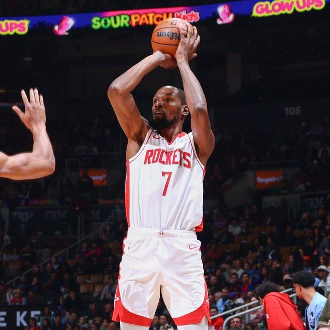 北京时间今天,NBA常规赛中,休斯敦火箭队在客场以139-121击败多伦多猛龙队,取得常规赛两连胜。本场比赛,火箭前锋凯文·杜兰特首发出场36分45秒。他19投11中,得到31分5篮板1助攻3盖帽。他三分球8投4中,罚球8投5中。他出现了3次失误和2次犯规,正负值+20。这也是他加盟火箭以来第二次单场得分30+。杜兰特在这场比赛中达到了一个里程碑。他的职业生涯罚球总数超过了迈克尔·乔丹,跃居历史第七位。