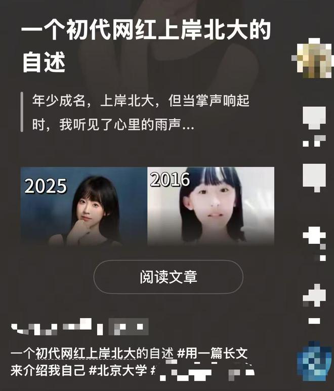 集目新闻记者、曼达见习记者李淑仪近日,“用长文自我介绍”成为网络热议话题。 12月3日,轩轩通过个人社交媒体账号“Angelxuanxuania”,以《一个北大第一代网红自传》为题,讲述了自己从12岁成为第一代网红到21岁考入北大的近十年成长经历。12月4日,轩轩接受极目新闻报道,报道了近十年的世俗意义,并做证明题。图为轩轩账号内容截图。 12岁时,轩轩不懂“自我”dia”却出人意料地出名了。2004年,轩轩出生在宁夏银川。12岁时,“因为新奇,我把视频发到了网上。有些人回复我并和我一起玩。我第一次感觉到我的声音被听到并被欣赏。 “那种感觉真的很好。”轩轩告诉记者,刚开始“搞”自媒体时,他并不认为自己会受到太多关注,只看到很多同行在模仿,他觉得很有趣。轩轩是一个拥有数百万粉丝的网红。于是,轩轩拍摄了他的第一个视频。“当时做短视频的人不多,话题本身很受欢迎,所以第一个视频就收到了5000多个点赞。”就这样,轩轩从模仿秀开始,走上了短视频的创作之路。 轩轩第一个视频截图:“我开始是拍一些模仿秀、唱歌、挑战,然后拍一些vlog、日常学习。轩轩说,当他“入坑”时,他并没有为自己设定所谓的“轨迹”,而是想到什么就发什么,完全按照自己的意愿创作。或许是因为同类型博主较少,又或许是轩轩的视频内容更有趣。2016年,轩轩加入后的头几年在美拍就获得了超过10万的粉丝。 2017年,轩轩在美拍的粉丝数量增至30万以上,加上其他平台的粉丝数量,轩轩说:“数据最好的时候,每个视频的观看次数都超过了百万。”给轩轩带来的不仅仅是掌声,还有一些贬义的评论。但当我在2017年的时候2018年,负面评论多了很多。”轩轩向记者展示了当时出现的一些不良评论。2018年2月23日,轩轩发布了一段唱歌视频,以为大家会认出他。但没想到的是,lumitaw是“流行音乐,走调,一个声音表演的。”“无论我怎么看你,我都不喜欢你。我不是故意的,我只是说实话。”轩轩作品下的一些恶意评论 2018年2月24日,轩轩在唱歌视频下又发布了一条评论,“今天我14岁了,你能祝我生日快乐吗?”然而,继这条评论之后“同学,对你的歌声不要有信心,你的声音就是大众的声音。”我不知道我做错了什么,但一些恶意评论总是出现在轩轩的视频中与此同时,现实生活中的轩轩也被迫接受了很多目光。据了解,当他和朋友不在学校时,他们会听到“hisura,XXX在网络上很受欢迎”。各种恶毒又陌生的声音充斥着轩轩的青春。为了打破“网红=学术渣男”的刻板印象,轩轩用了十年的时间来证明自己,“心情好的时候感觉很好,但感觉这些评论莫名其妙。”轩轩表示,看到负面评论后,他的第一反应是“拒绝”。但如果你自己解释的话,网友们就会感到愧疚。轩轩的困境只能归结为“他不够好”。当初中接触互联网时,很多人觉得“进入互联网”就等于“教育不好”、“生活不如意”。图为轩轩的生活照。为了打破此类评论者的刻板印象,轩轩开始了长达十年的自杀。 “有人说网络学习‘入坑’耽误了?我是在班上排名第一。有人说普通初中竞争压力低?我考入了银川市第一中学。有人说我考不上好大学?我考入了上海财经大学。有人说我考上上海财经大学是因为地理?保证考上北京大学。”轩轩写下了这份近三千字的自我报告。轩轩说,即使他就读的重点学校在当地不是重点学校,他的成绩也一直处于顶尖水平。收到差评后,轩轩把“差评”变成了学习的动力,“我觉得我应该好好学习,取得一些成绩。” 15岁的轩轩努力学习,考入了当地重点高中“宁夏回族自治区银川市第一中学”。为了高考,18岁的轩轩没有更新看了一个学期的视频,考入了上海财经大学(以下简称上海财经大学)数学系。但没想到,有人质疑他们考上蔡是因为地理优势。轩轩的本科录取通知书(面试官提供) 进入上蔡后,轩轩继续高中学业。大学前两年,轩轩的成绩总体保持在前列。大三时,轩轩的专业与其他班级合并,成绩一直保持在前5%。就这样,轩轩获得了免考研究生的资格。 “其实我在申请的时候就仔细考虑过,到底能不能申请复旦大学或者上海交通大学,最后一刻我才想自己去尝试一下。” 2025年9月25日,轩轩收到北京大学汇丰商学院拟录取通知书学校。轩轩录取通过北大直书(面试官给出) 做了十年认证题,现在想轮换的轩轩告诉记者,自从2016年“进军”互联网以来,他从来没有想过要停止更新视频。 “遇到负面评论我很难过,但我不想认输,也不想让喜欢我的人失望,所以我想我必须做出一些成绩,我想反击,我想让那些讨厌我的人知道,你不喜欢的小女孩现在很坚强。”当被问及当时是否害怕再次遭遇网络暴力时,宣宣说:“我没有想太多,本以为回应网友后就停止了,但没想到每一个阶段都会有负面评论。”直到一天晚上,他才意识到,自己在过去的十年里,为反击这些负面评论做了一场“伟大”的尝试。所以现在徐恩轩想要摆脱负面评价,“我想找到我手上那张白纸,第一行写什么,我还没有想好。”轩轩说道。在轩轩长文的评论区里,不少粉丝感叹他这一路的成长。极目新闻记者联系了很多2018年以来关注轩轩的粉丝,“他的视频内容一直都是积极向上的,给我的感觉就是他很自信,很努力,可以说是一个榜样。” “轩轩确实是一个榜样,一个非常自律、充满活力、积极向上的女孩。我觉得她有很多值
